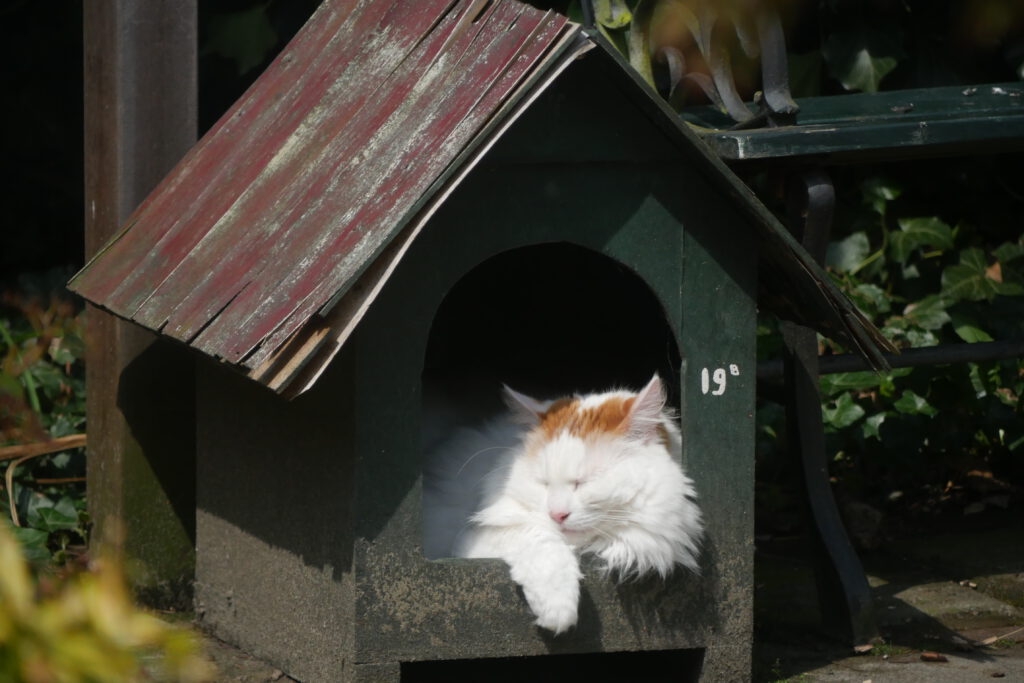 Een typische kleine klus. Onze kat is graag buiten. Overdag slaapt ze binnen en ’s nachts loopt ze wat rond in de tuin en om het huis. Katten zijn erg op hun comfort gesteld, je vindt ze altijd op de mooiste en warmste plekjes. Vorig najaar hebben we het kattenhuisje een opknapbeurt gegeven. We vervingen het dak en we legden vloerisolatie aan (piepschuim) dat én het fijne wollen tapijt maakt het ook in de winter een comfortabele plek om te schuilen. Binnenkort moet ik nog even de buitenkant schoonmaken.